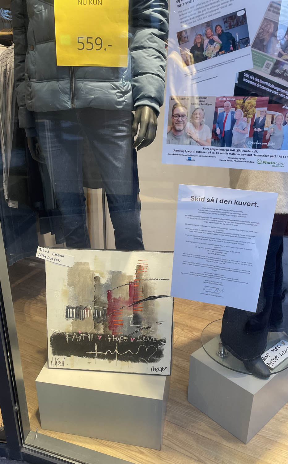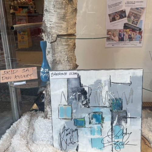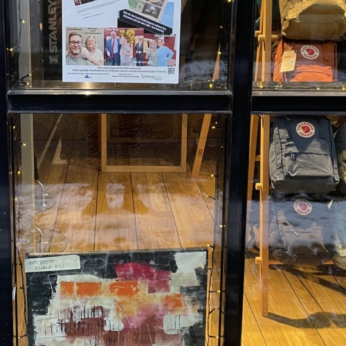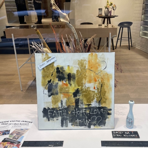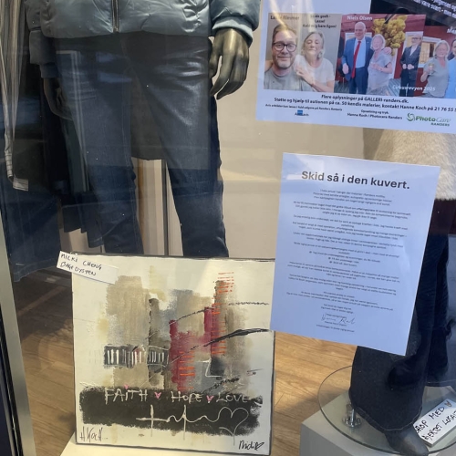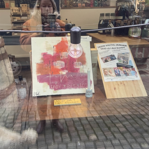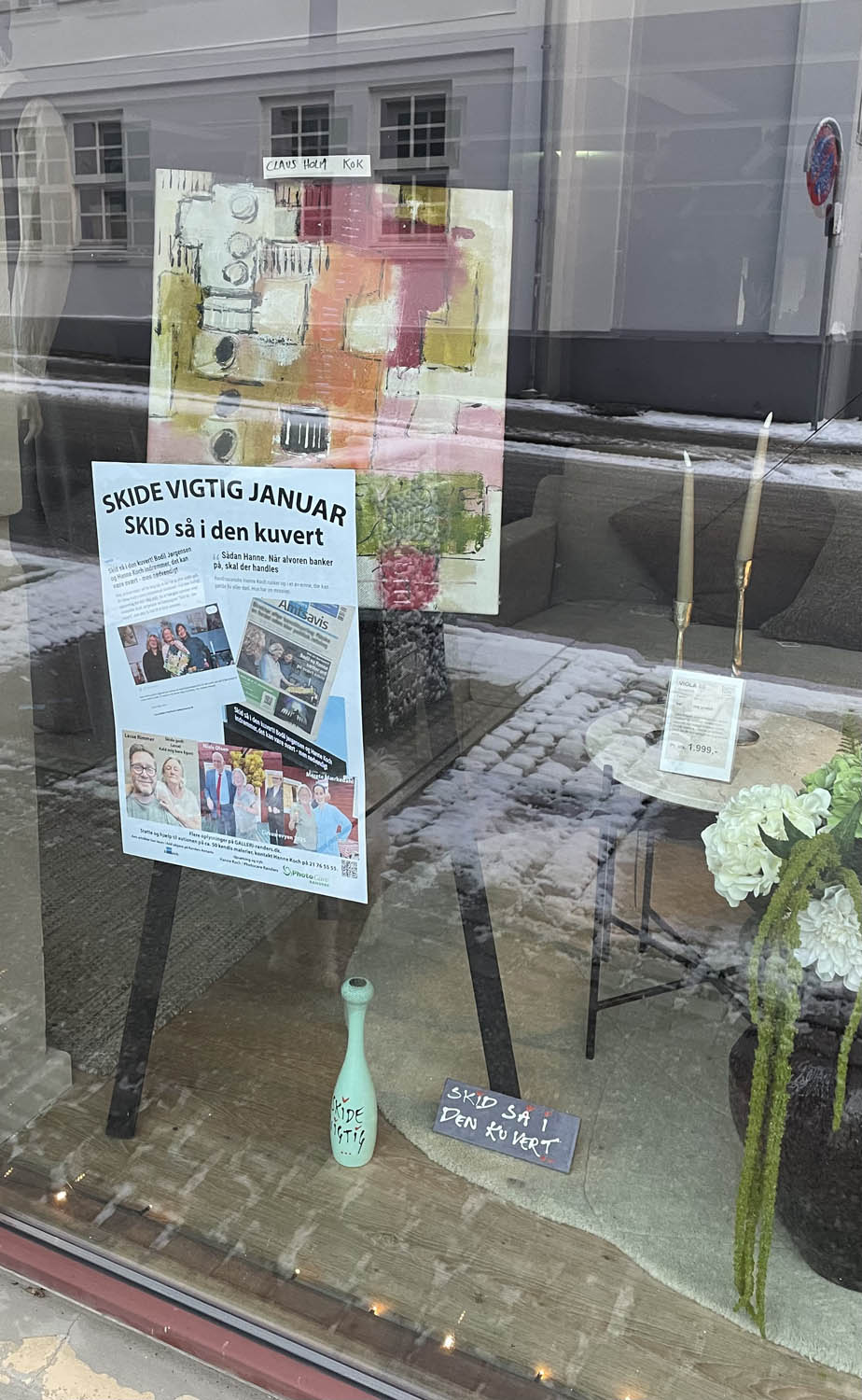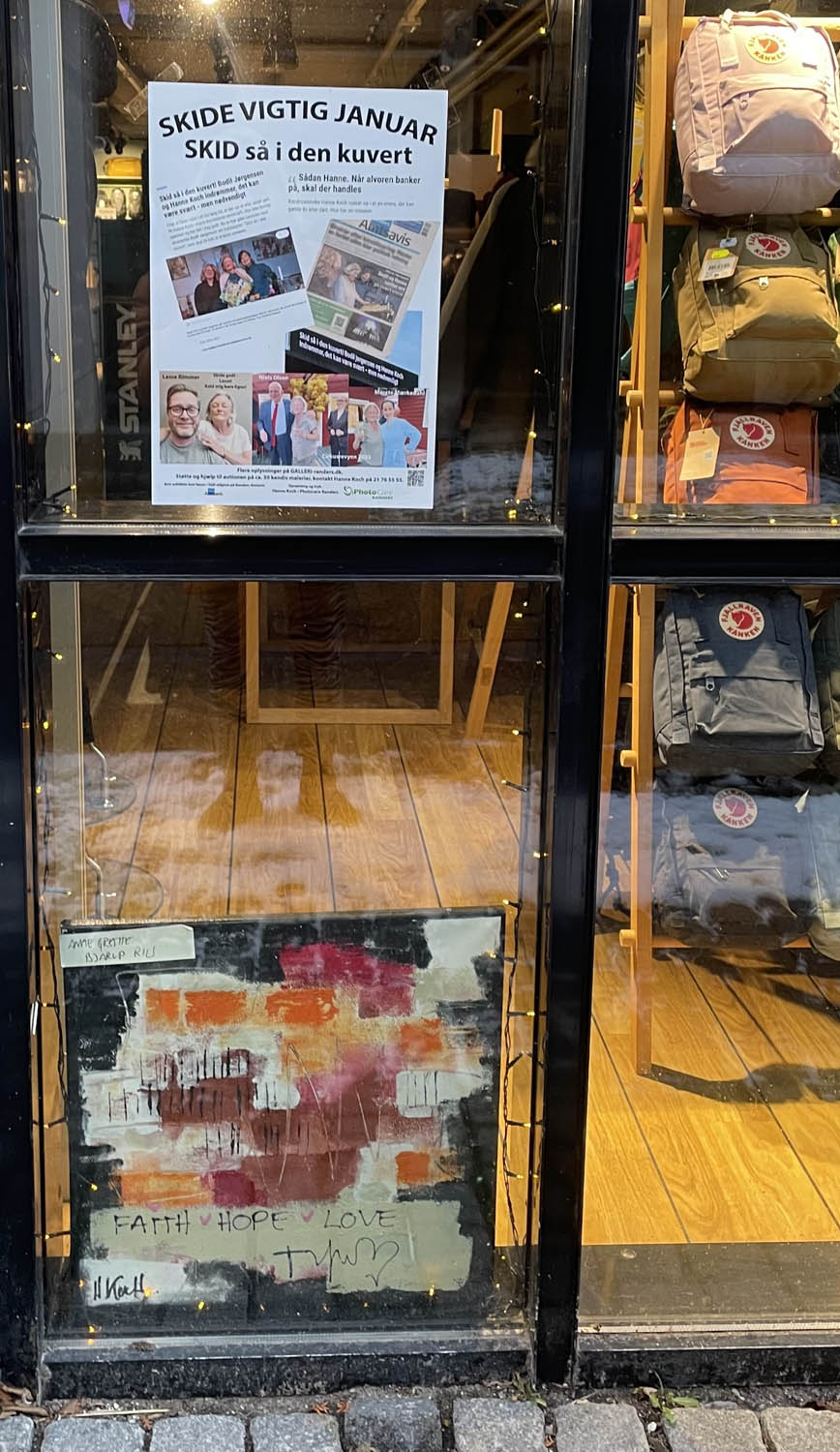 Så er der afleveret ca 40 malerier og plakater rundt omkring i Randers midtby med budskabet SKID SÅ I DEN KUVERT